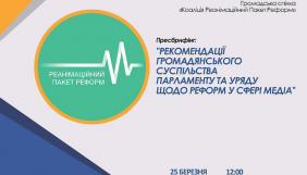 25 березня – прес-брифінг «Рекомендації громадянського суспільства парламенту та уряду щодо реформ у сфері медіа»