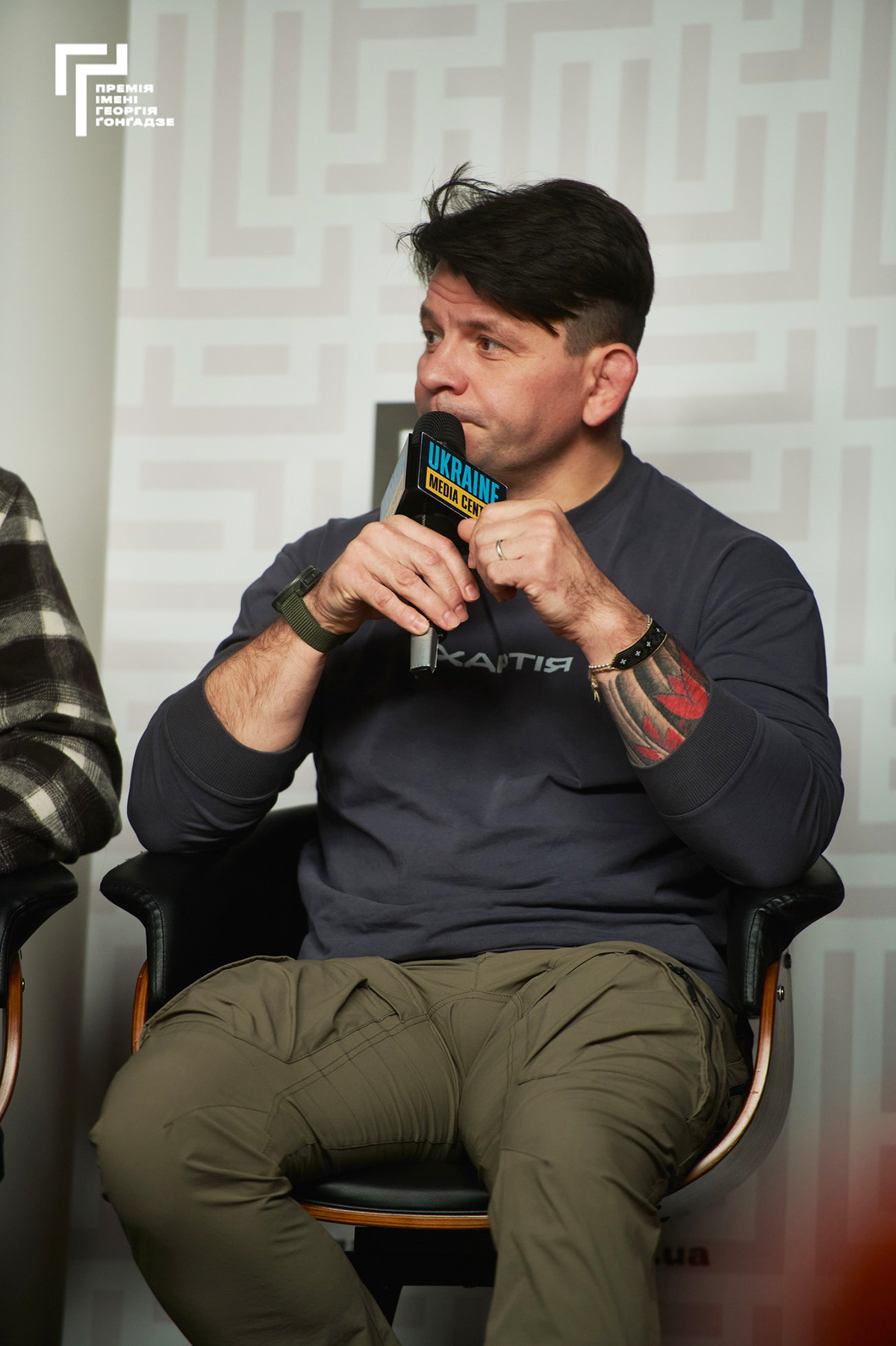 Шості Медіадні Премії імені Георгія Ґонґадзе, що пройшли в Києві 14-15 листопада, розпочалися з панельного обговорення «Феномен медійки підрозділів Сил оборони». Її учасниками були: начальниця відділу комунікацій Третього армійського корпусу, офіцер ЗСУ Христина Бондаренко; начальник групи взаємодії з медіа 2-го корпусу НГУ «Хартія» Володимир Дегтярьов; головний редактор «Армія TV» Євген Самойленко; фахівець із візуальних комунікацій Сил безпілотних систем ЗСУ Владислав Рибалко. Модерувала обговорення журналістка та документалістка Євгенія Подобна. Учасники панельної дискусії говорили про те, як висвітлити війну та не нашкодити, як залучити аудиторію та як вибудовувати співпрацю з медіа.