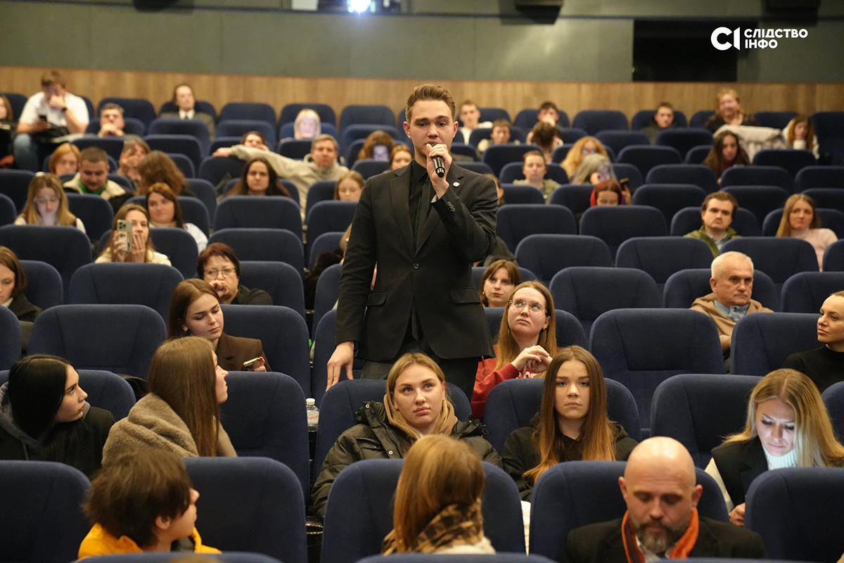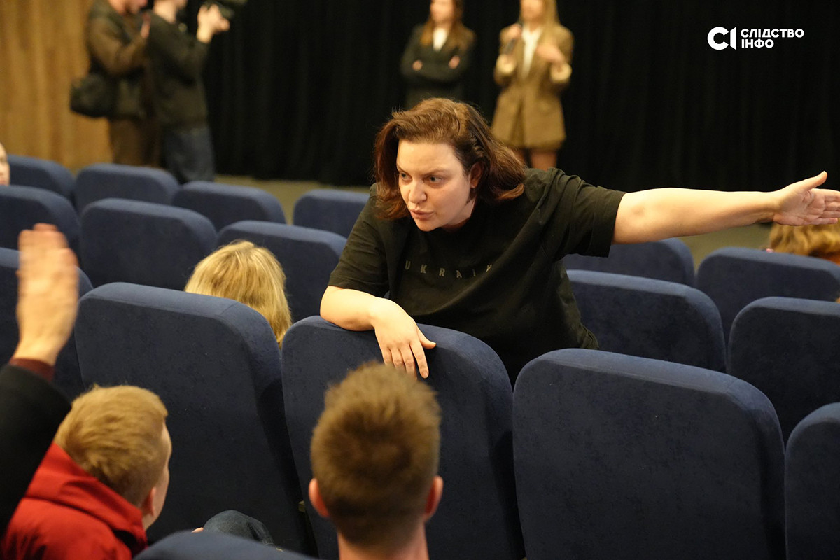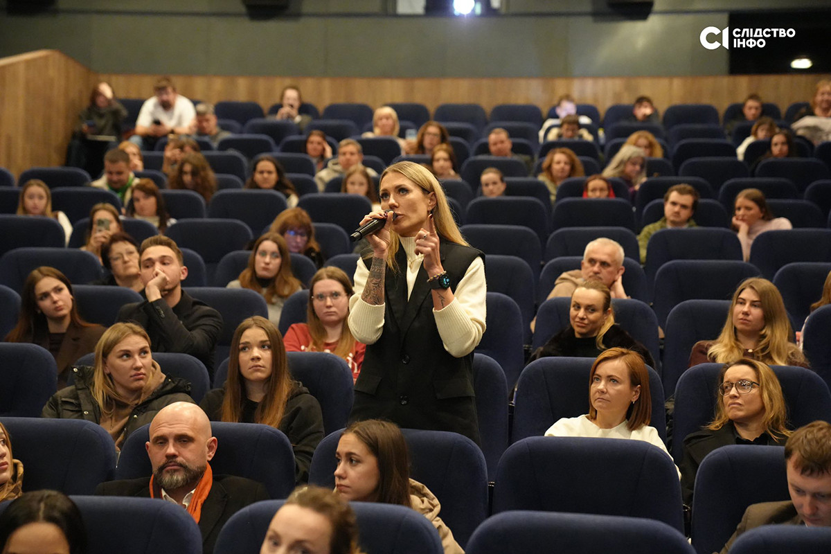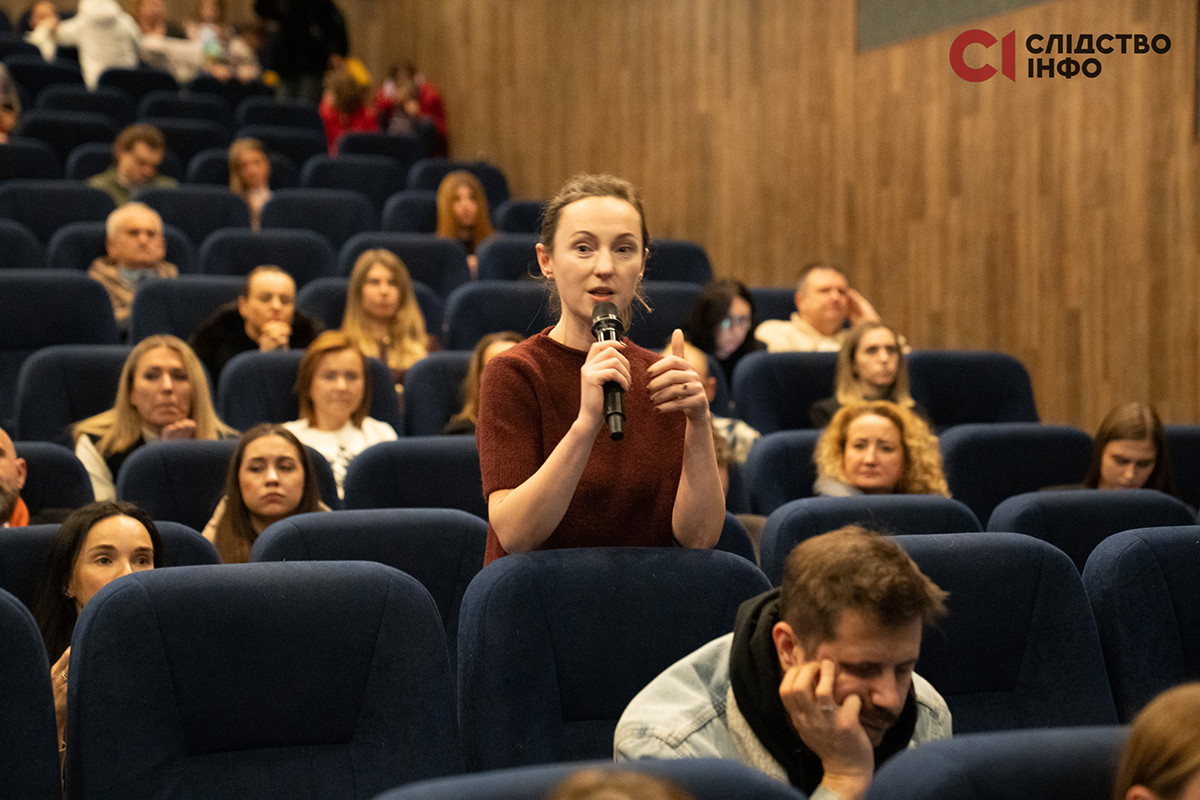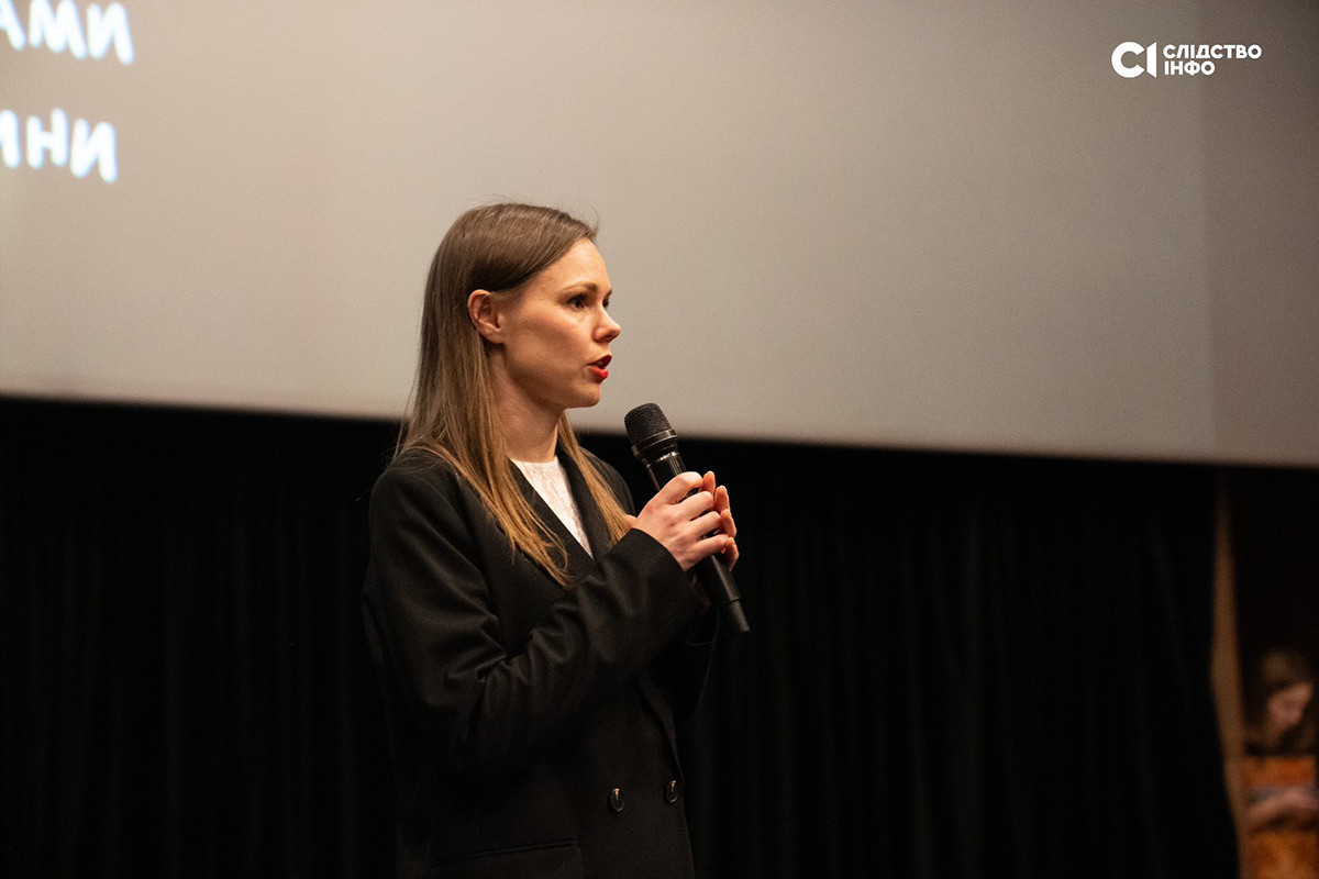 Після завершення показу редакторка-засновниця «Слідства. Інфо» та співавторка фільму Анна Бабінець представила команду стрічки та запросила до слова Яніну Корнієнко.
