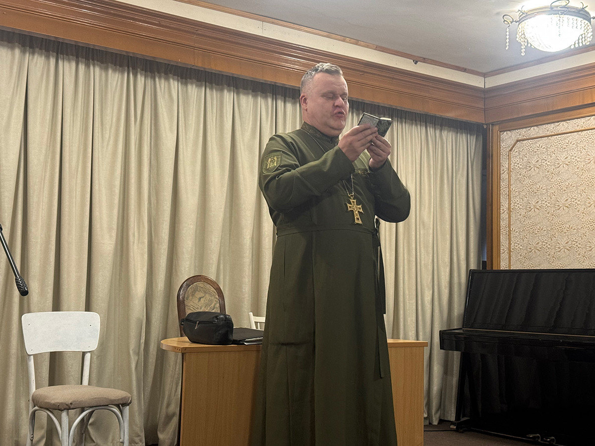 На початку презентації прозвучало молитовне слово отця Димитрія (Присяжного), капелана та священника ПЦУ, настоятеля Свято-Покровської парафії у місті Боярці, який активно служить в ЗСУ з 2014 року.