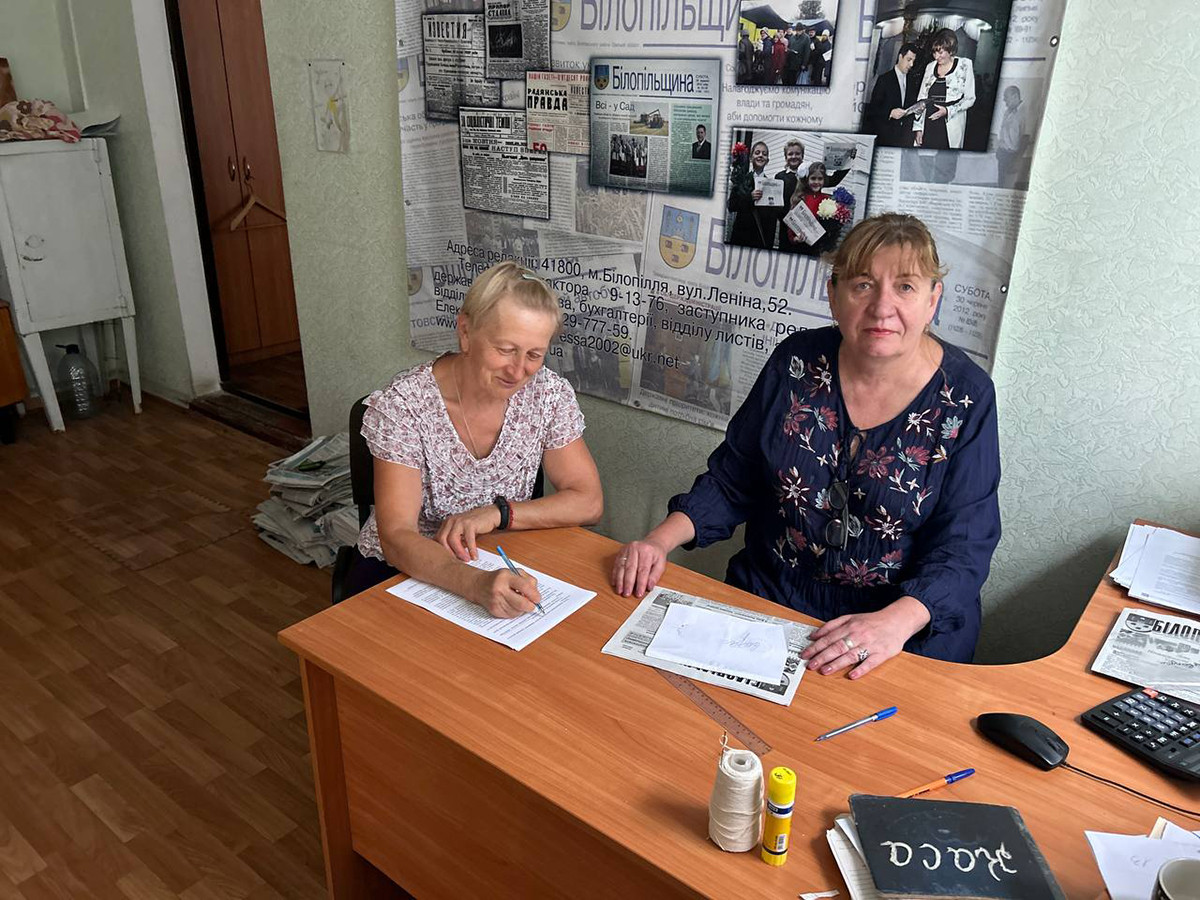 «Наша редакція продовжує приймати людей в офісі в Білопіллі: журналістка приходить туди в першій половині дня, коли відносно безпечно. Люди приносять оголошення про втрачене посвідчення, житло. Для них це важливо, адже поліція у таких випадках вимагає саме вирізки з газети», — пояснює редакторка.