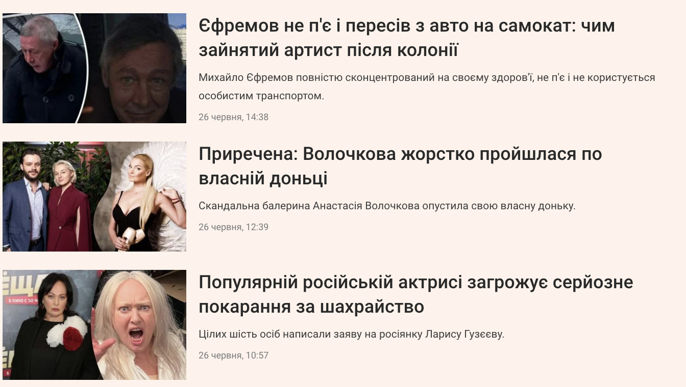 - «Єфремов не п'є і пересів з авто на самокат: чим зайнятий артист після колонії» («Главред»);