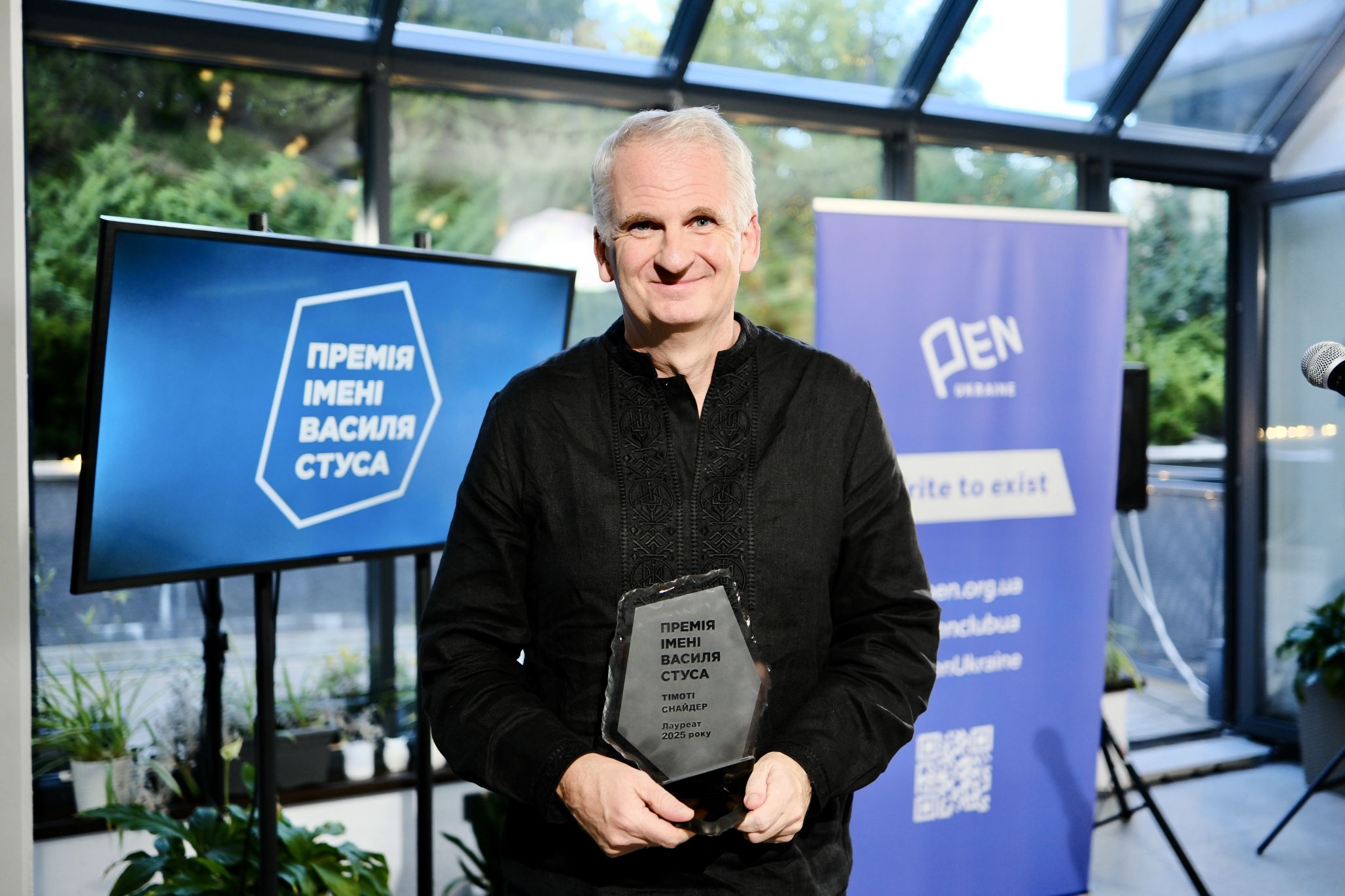 Цьогорічним лавреатом премії імені Василя Стуса став американський історик і письменник Тімоті Снайдер. Церемонія нагородження відбулася сьогодні, 11 вересня, у просторі Українського ПЕН у Києві. Про це розповіли організатори премії.