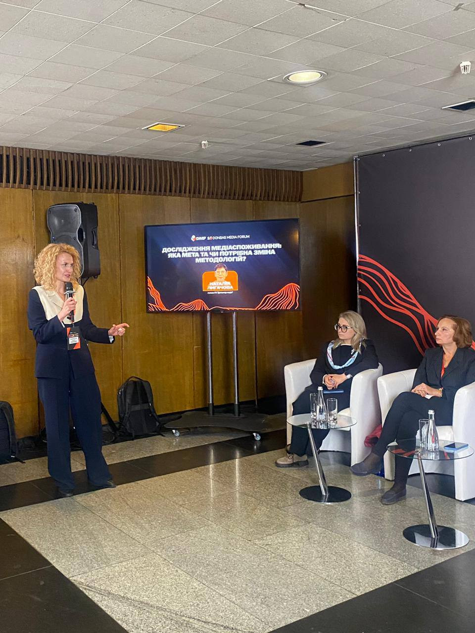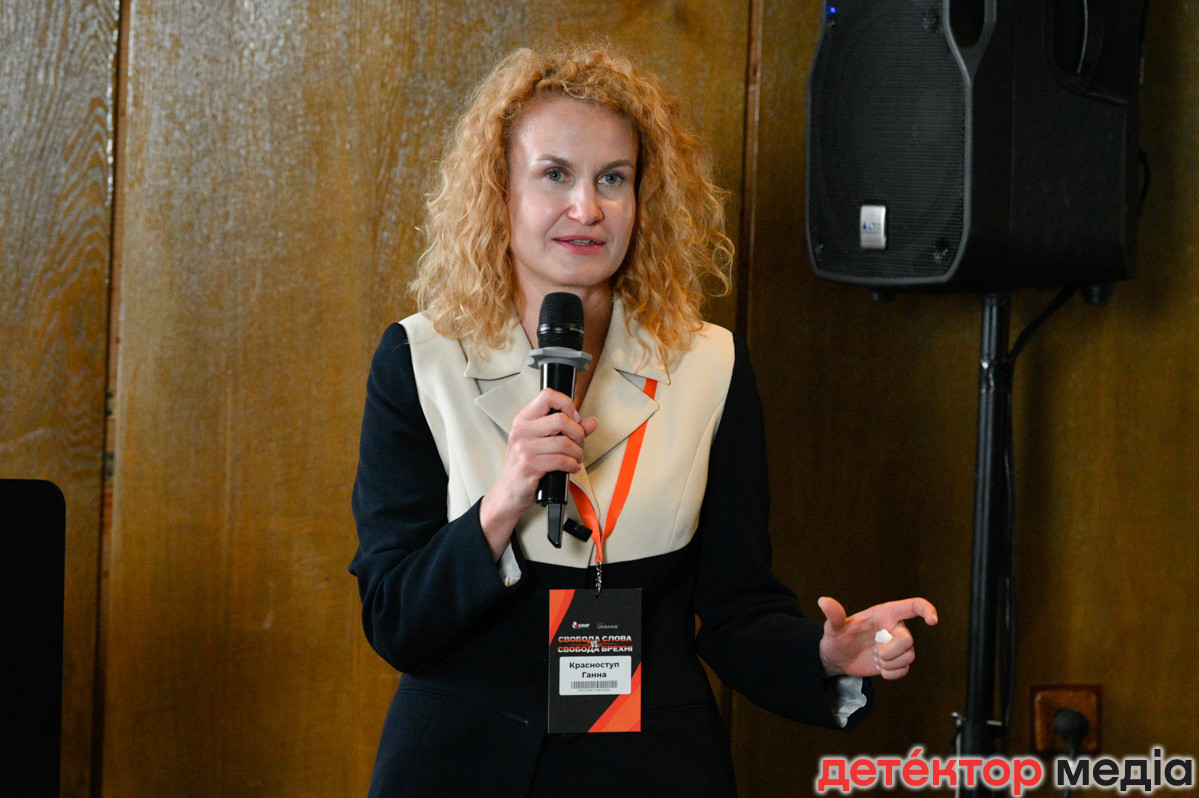 Ганна Красноступ під час дискусії «Дослідження медіаспоживання: яка мета та чи потрібна зміна методологій?»