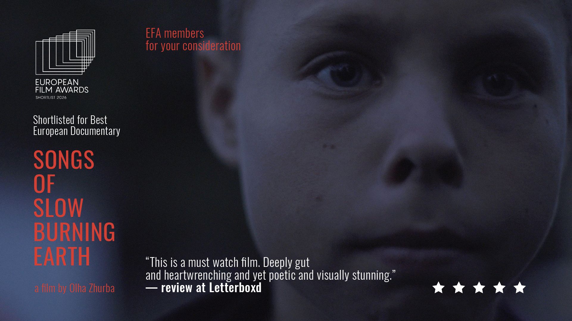 Документальний фільм «Пісні землі, що повільно горить» режисерки Ольги Журби увійшов до шортлісту European Film Awards (премія Європейської кіноакадемії) в категорії «Найкращий документальний фільм». Про це повідомила комунікаційна команда стрічки.
