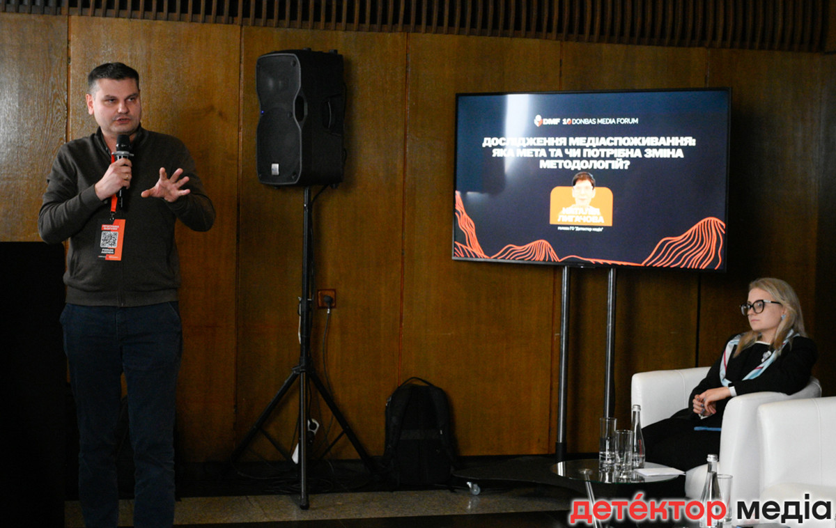 Як адаптувати методології досліджень до поведінки аудиторії, що постійно змінюється? З якою метою проводяться дослідження, що насправді вимірюють і кому саме аудиторія довіряє, — ці запитання стали ключовими під час дискусії «Дослідження медіаспоживання: яка мета та чи потрібна зміна методологій?», ініційованої «Детектором медіа» в рамках Donbas Media Forum.