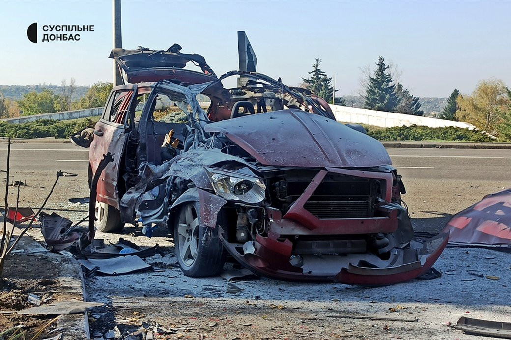 На фото: авто журналістів, яке обстріляли війська РФ. Джерело: Суспільне