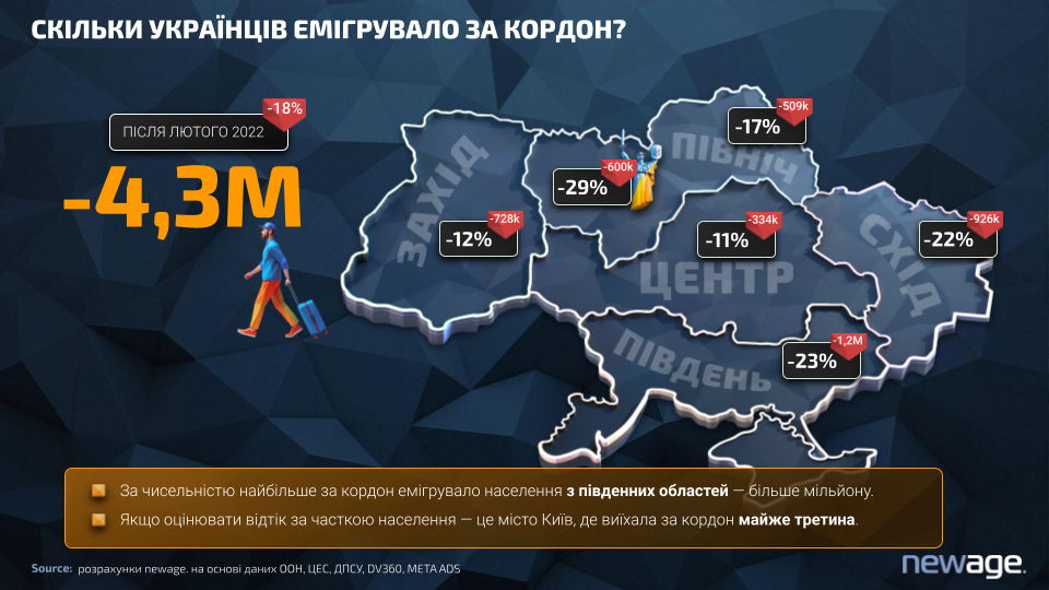 З 2022 року з України виїхало близько 4,3 мільйона людей. Це ті, хто тимчасово або постійно мешкає за кордоном. Частина з них залишається активними у цифрових екосистемах — користується українськими сервісами, дивиться український контент, зберігає зв’язок із брендами через соціальні мережі.