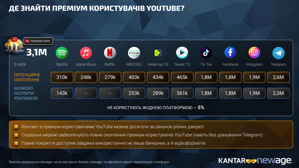 До провідного переліку також входять Netflix, Megogo, Spotify, Telegram Premium. Це сервіси, які дають користувачам контроль над контентом: без реклами, з якіснішими рекомендаціями та швидким доступом до медіа.
