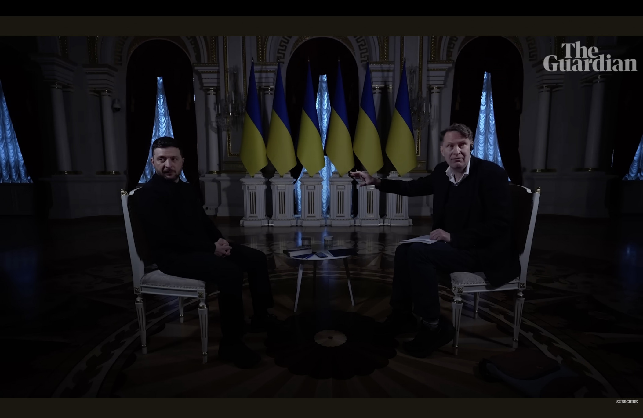 Під час запису інтервʼю Зеленського для The Guardian в Маріїнському палаці в Києві вимкнули світло. «Це наші умови життя. У нас в Києві перепади з електроенергією, як і всюди», — сказав Зеленський pic.twitter.com/lAicKcFhc3