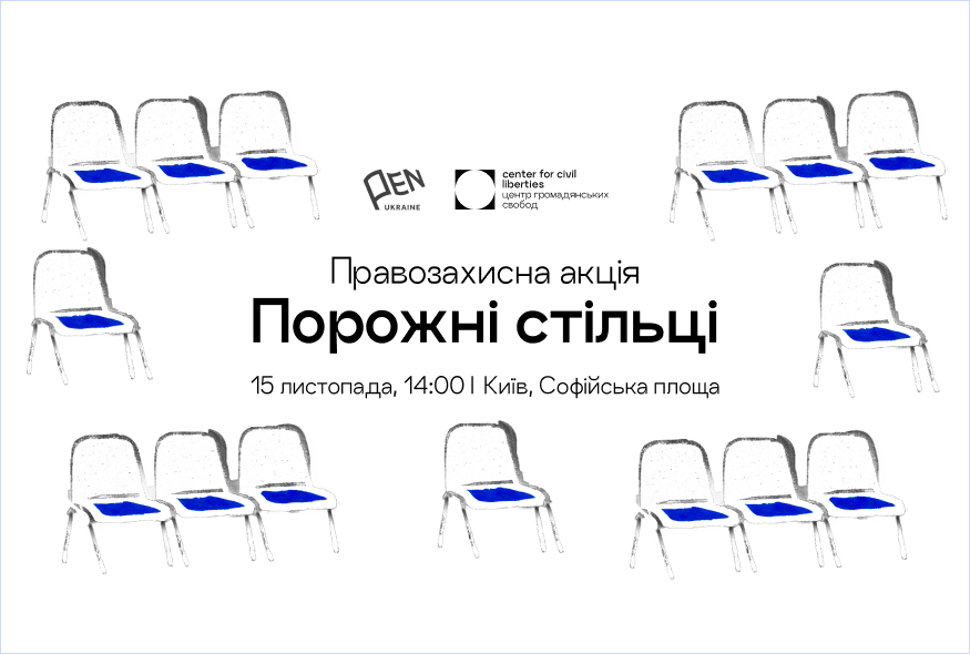 Правозахисна акція «Порожні стільці» на підтримку журналістів, письменників, діячів культури та правозахисників, що зникли безвісти, були ув’язнені чи перебувають в неволі через війну Росії проти України, відбудеться 15 листопада о 14:00 на Софійській площі в Києві. Про це повідомили на сайті Українського ПЕН, який організовує подію спільно з Центром громадянських свобод.
