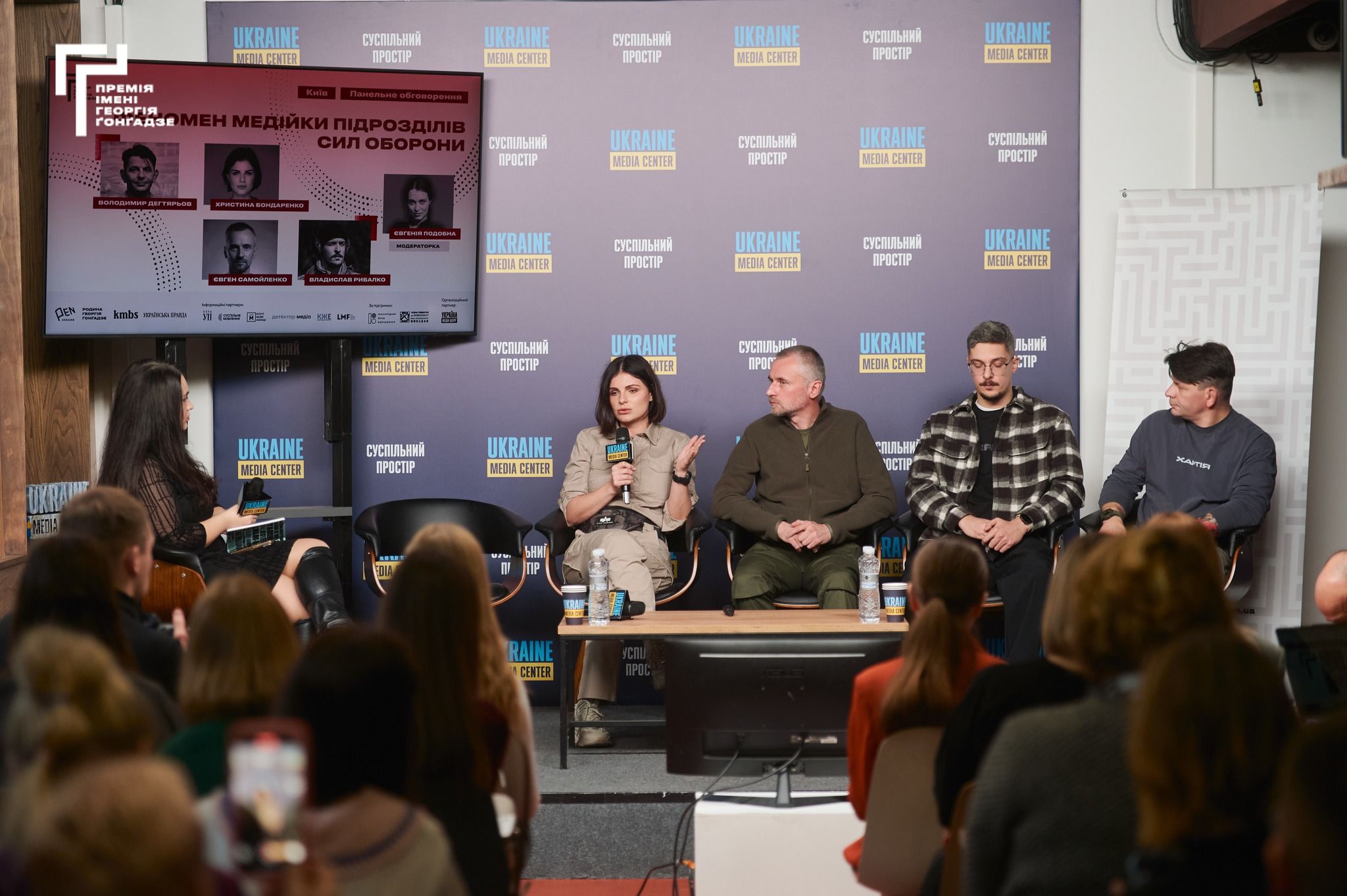 У дискусії також взяла участь начальниця відділу комунікацій Третього Армійського корпусу, офіцерка ЗСУ Христина Бондаренко. Модерувала розмову журналістка та документалістка Євгенія Подобна.