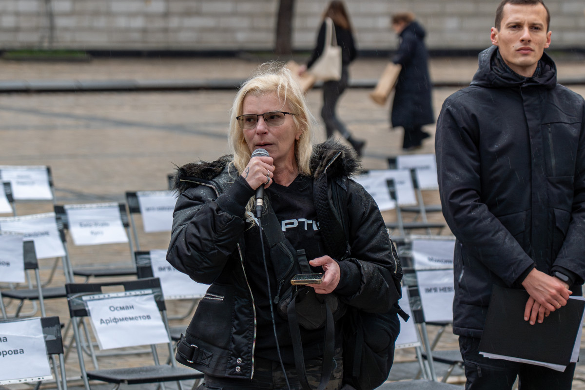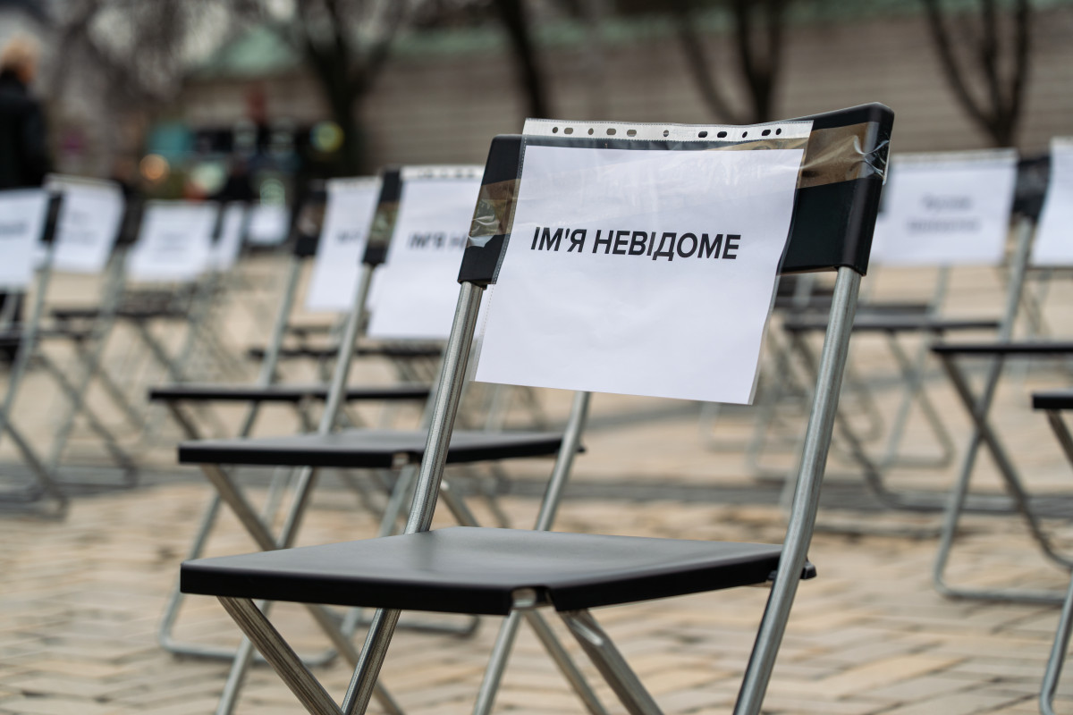 Під час акції на площі встановили символічну інсталяцію з порожніх стільців з іменами незаконно ув’язнених, полонених та зниклих безвісти з початку російської агресії у 2014 році. На частині стільців стояли таблички «Ім’я невідоме», оскільки деякі імена ув'язнених, полонених і зниклих безвісти українців лишаються невстановленими.