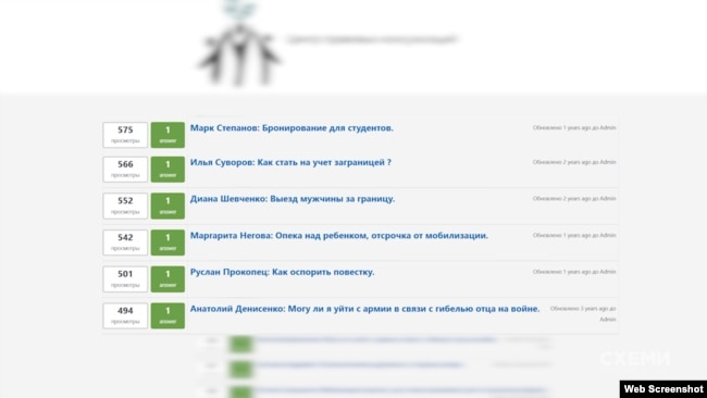 Серед інших звітів згадуються і сайти «юридичної підтримки». Нерідко основні теми на них – це «виїзд за кордон» та «відстрочка мобілізації».