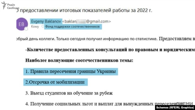 Саме така адреса згадується і у звіті Бакланова за проведену в Україні роботу, документі з витоку «Правфонду» за 2022 рік.