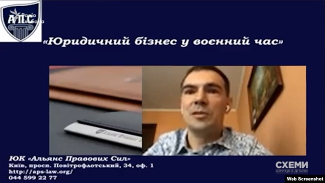 Під час презентації адвоката Собковича можна помітити адресу його адвокатської компанії – «Повітрофлотський проспект, 34 (нині проспект Повітряних Сил – ред.), офіс 1».