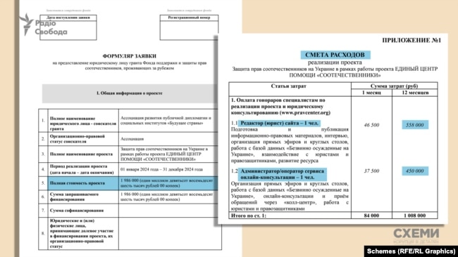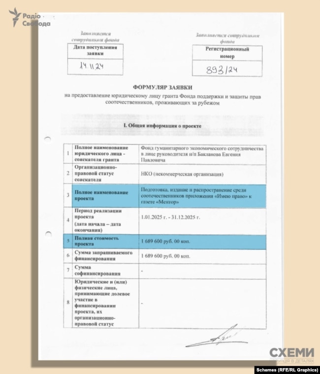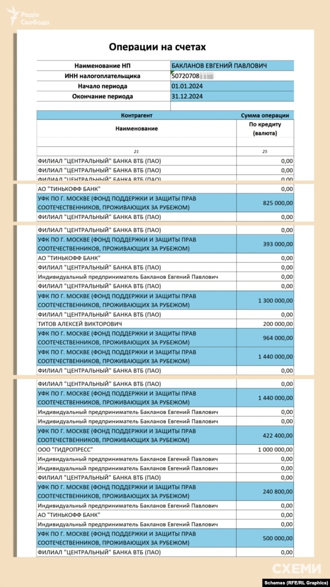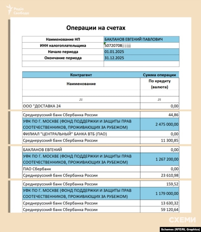 Цей факт підтверджується не лише великим масивом документів російського «Правфонду», що роздавав ці гранти, а і випискою з рахунку Євгена Бакланова в російському банку, яку змогли отримати «Схеми».