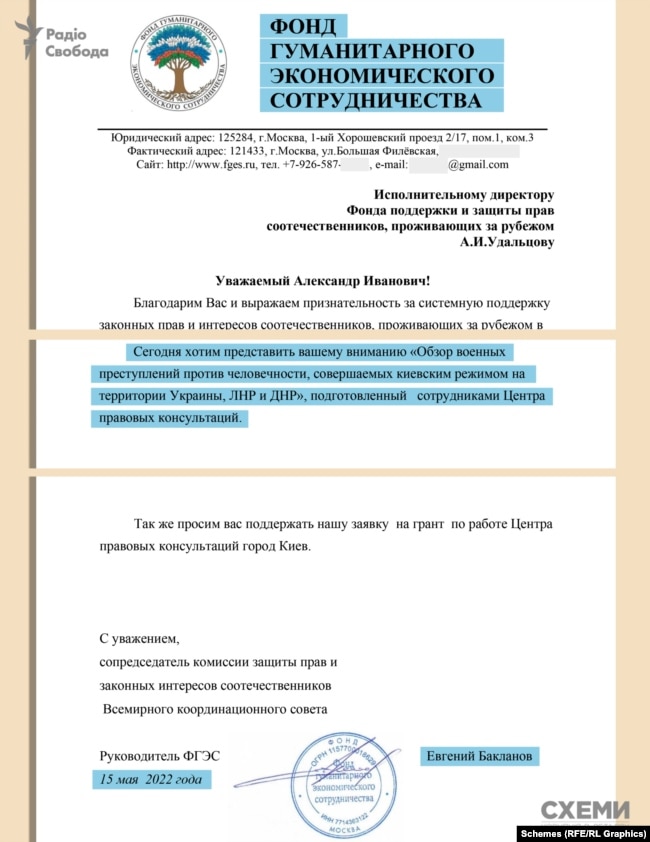 Бакланов надіслав один із таких оглядів від адвокатів у листі до керівництва російського державного фонду від 15 травня 2022 року.