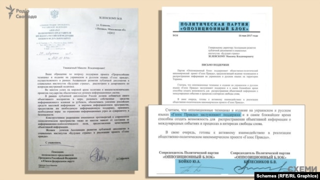 Раніше Максим Зеленський, згідно з документом з витоку, просив гроші з «Правфонду» на проєкт «Голос правди». Тоді він заручився заохочувальним листом від адміністрації президента Володимира Путіна. А також отримав лист підтримки за підписом народного депутата «Опозиційного блоку» Юрія Бойка та співголови партії Бориса Колесникова.