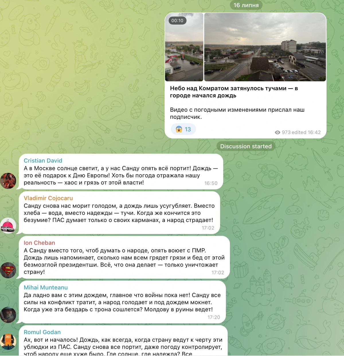 Втім, алгоритм все ще припускався помилок. Як наслідок, під дописом про дощ в одному з молдовських міст боти залишили більше як десяток коментарів про те, що Майя Санду зіпсувала погоду в країні.
