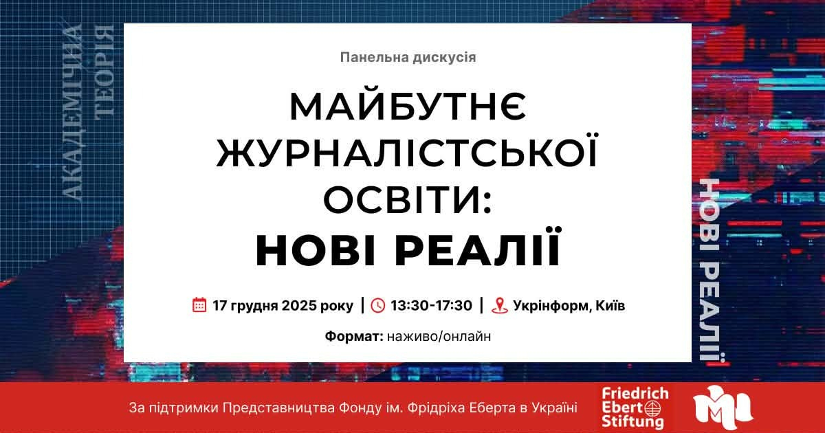 17 грудня 2025 р. в Києві о 13:30 в ІА «Укрінформ» відбудеться панельна дискусія «Майбутнє журналістської освіти: нові реалії».