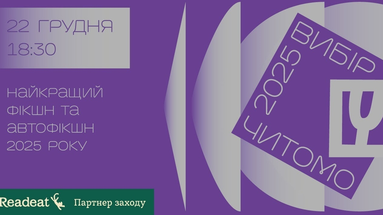 22 грудня в Києві літературні критики оголосять найкращі книжки української прози за 2025 рік — фікшн та автофікшн — в межах відзнаки «Вибір Читомо», яку цьогоріч присуджуватимуть вперше. Про це повідомила пресслужба «Читомо».