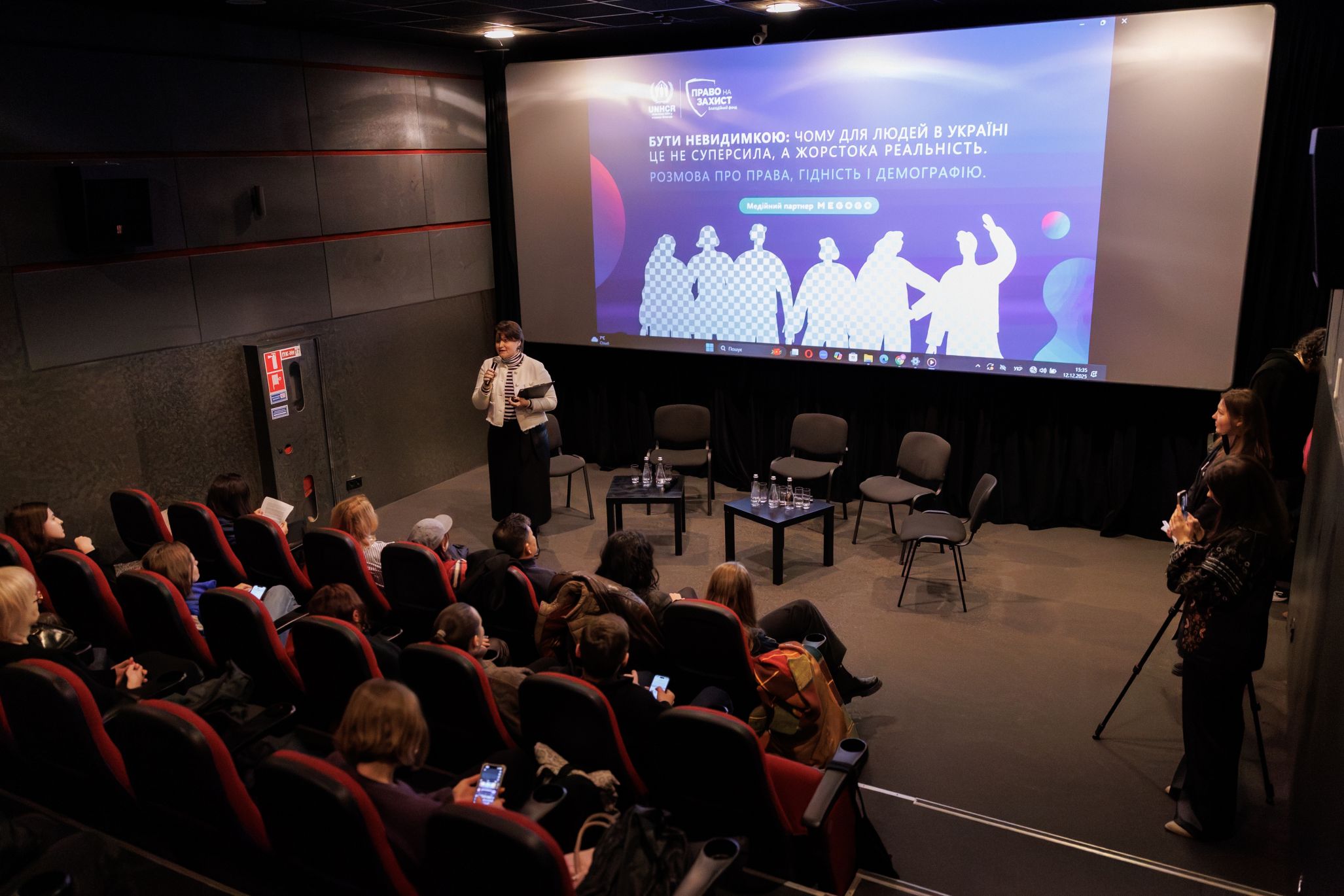 Опісля показу в кінотеатрі «Жовтень» відбулась експертна дискусія «Бути невидимкою: чому для людей в Україні це не суперсила, а жорстока реальність» під час якої поговорили про проблему безгромадянства, права та захист таких людей і демографічний контекст. Участь у ній взяв герой фільму Андрій Лі, режисерка стрічки Анастасія Тиха, керівниця напряму допомоги біженцям, шукачам захисту та особам без громадянства БФ «Право на захист» Софія Кордонець та голова правління Центру прав людини ZMINA Тетяна Печончик. Модерувала захід виконавча директорка організації «Центр громадянських свобод» Олександра Романцова.