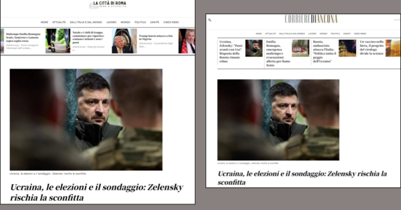 25 грудня на 90 сайтах, орієнтованих на італійську аудиторію, синхронно опублікували «редакційні матеріали», спрямовані на погіршення ставлення до України та послаблення її міжнародних позицій. Про це повідомив Центр стратегічних комунікацій при МЗС України.