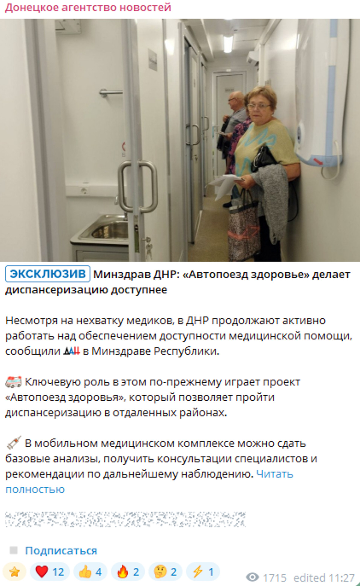 Скрин із телеграм-каналу «Донецьке агентство новин» (22 тис. підписників)