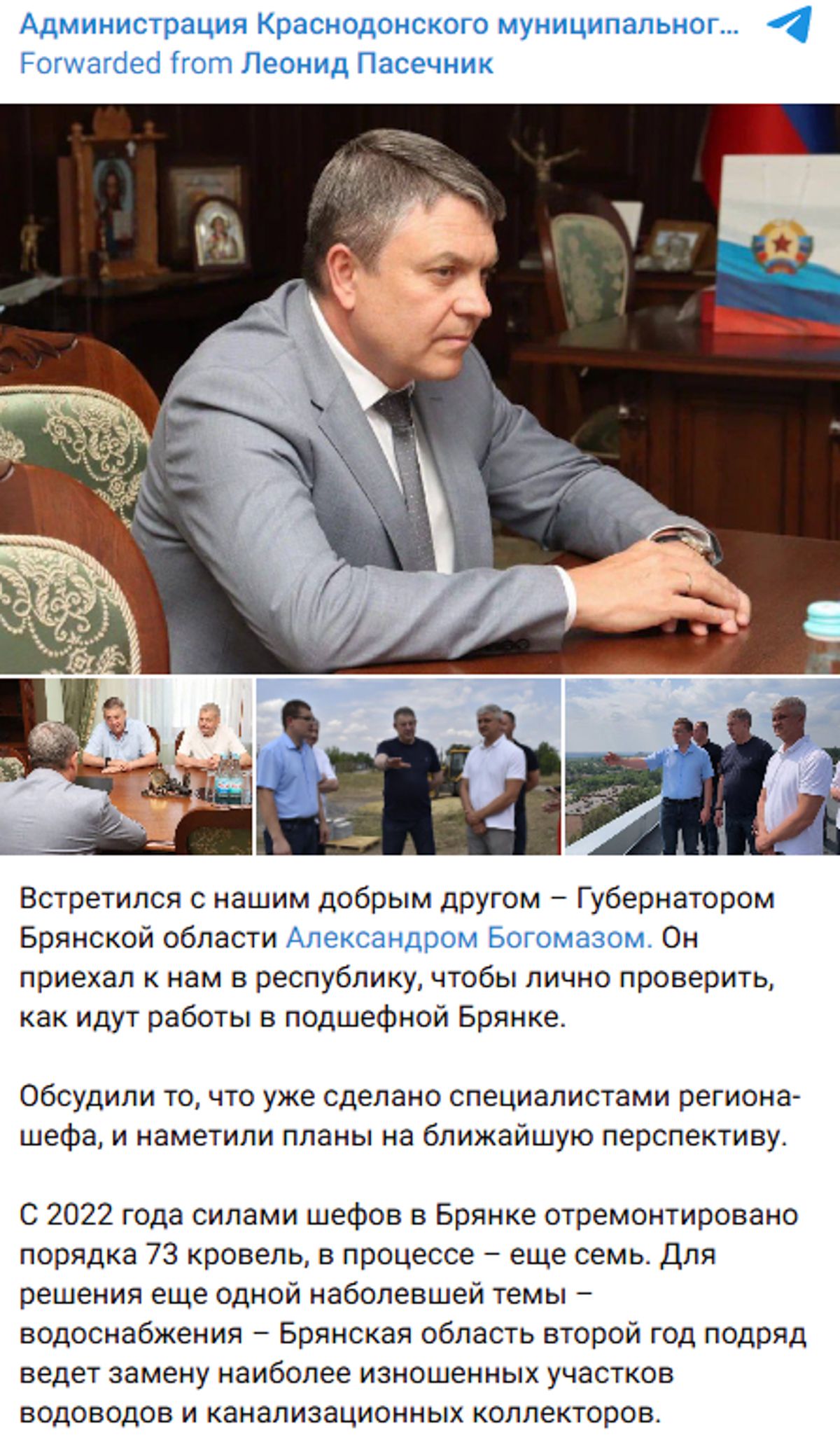Скрин із телеграм-каналу «Адміністрація Краснодонського муніципального округу» (6 тис. підписників)