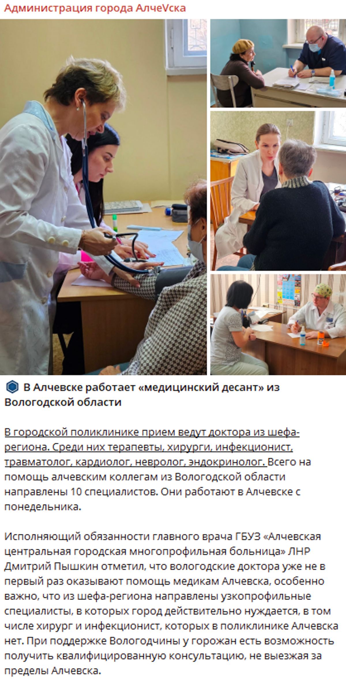 Серед інших проблем у Луганській області згадується, як і в інших областях, дефіцит кадрів, зокрема медиків і педагогів. Тут так само як і в Донецькій області проблему перекривають повідомленнями про тимчасові візити лікарів із Росії, які в мілітарній риториці називають «десантом». Таким чином, так само як і з комунальними послугами, відсутність доступу місцевих жителів до медичних послуг намагаються подати через «позитивні» повідомлення про допомогу з боку країни-окупантки, яка і спричинила окупацію, виїзд спеціалістів і дефіцит кадрів.