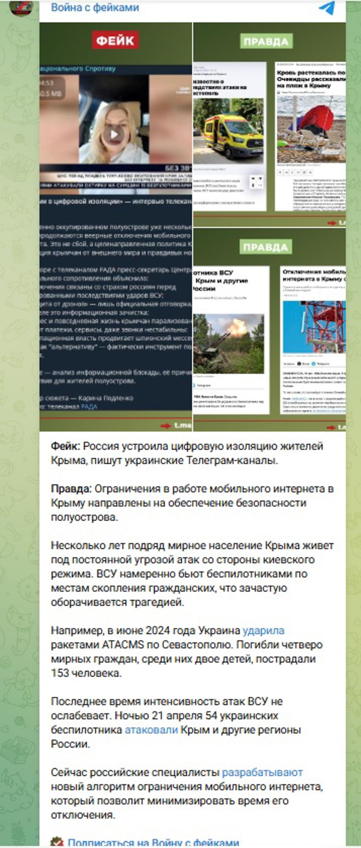 Скрин із телеграм-каналу «Война с фейками» (410 тис. підписників)