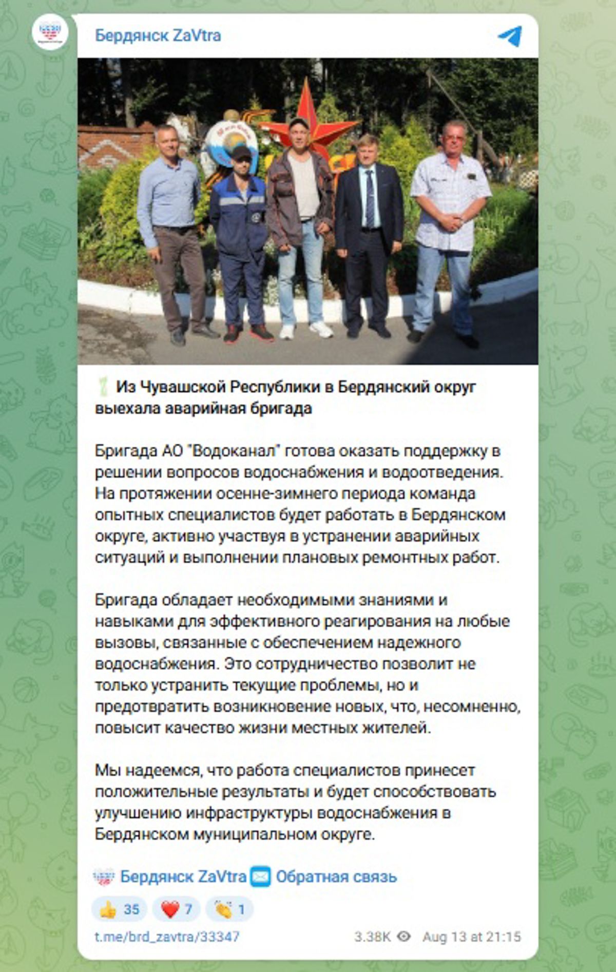 Скрин допису із телеграм-каналу «Бердянск ZаVтра» (12 тис. підписників)