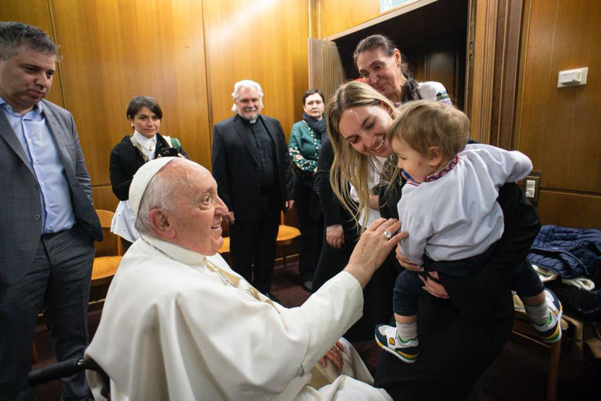 Анна Зайцева з сином на зустрічі з Папою Франциском. Фото: архів Євгена Афінеєвського