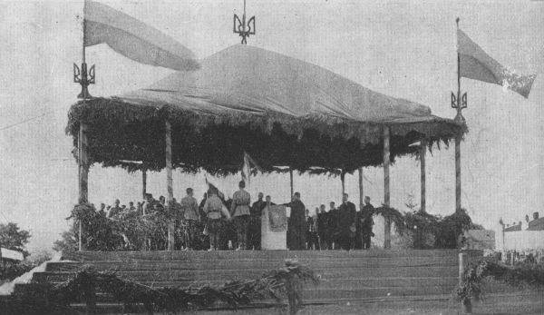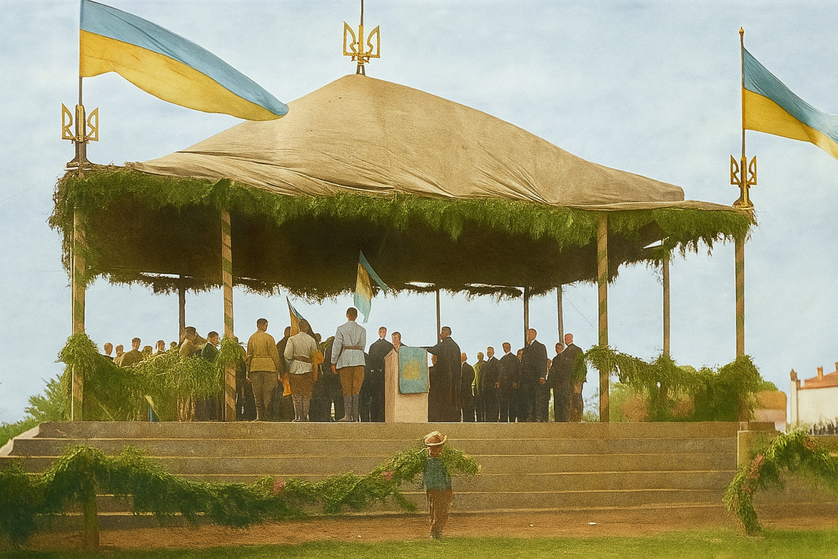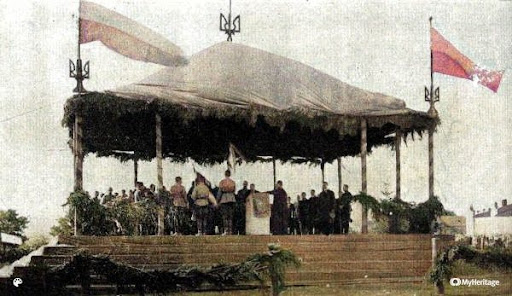 Ось, наприклад, зверніть увагу на світлину з урочистої присяги на вірність УНР у Кам’янці-Подільському 14 жовтня 1919 року, після Злуки УНР і ЗУНР, чию річницю ми відзначали 22 січня. На цій фотографії праворуч і ліворуч майорять жовто-блакитні прапори.