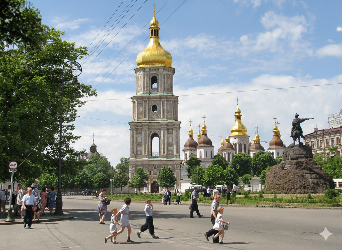 А ось як його «колоризував» ШІ (та ж модель Gemini, той же промпт). Зверніть увагу на колір куполів (хоч він мав би знати, що вони насправді зелені):