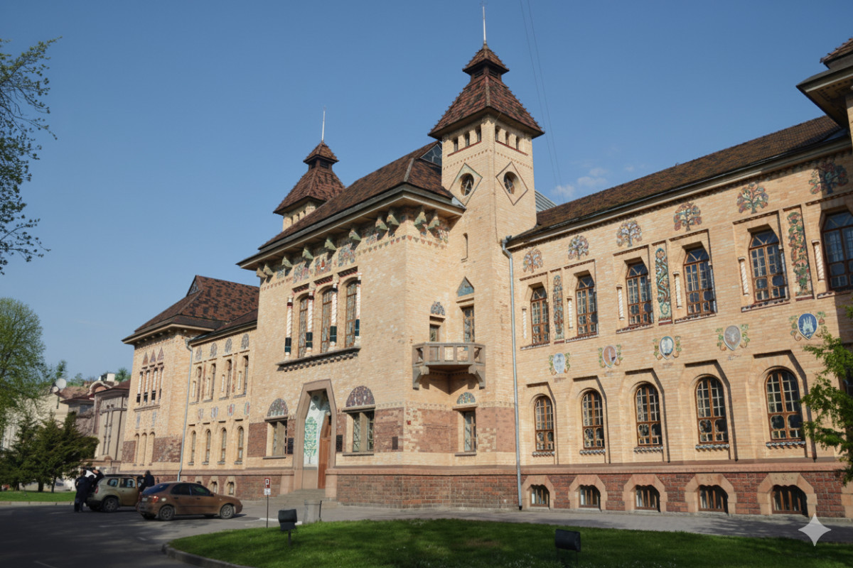 Навіть із сучасною фотографією, де ми знаємо справжні кольори, генеративний ШІ змінює їх довільно. Щоб показати, що це відбувається повсякчас і просто закладене в алгоритми генеративного ШІ, я спробував обробити таким чином сучасну фотографію — полтавського Краєзнавчого музею, де на стіні зображені герби міст Полтавщини. Ось оригінал фото: