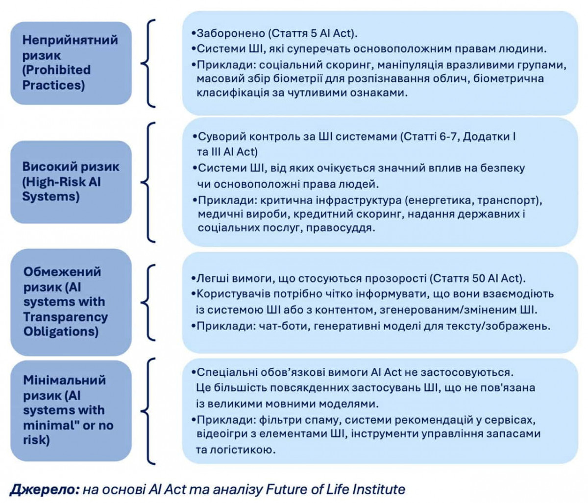 У ЄС під AI Act будується дворівнева інституційна архітектура: є центральний рівень і національні органи, які відповідають за нагляд і правозастосування.