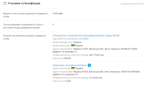 Також, за даними YouControl, Наталія Романова володіє ТОВ «Схід Медіа Холдинг», до якого належало онлайн-видання Cxid.info.