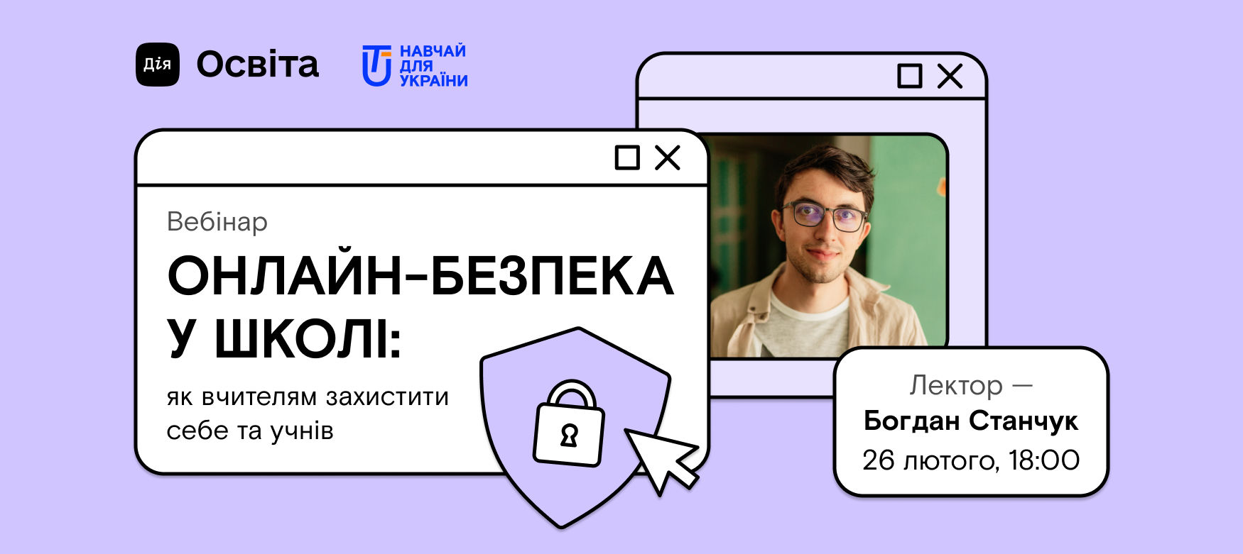 Дія.Освіта спільно з громадською організацією «Навчай для України» запрошує освітян на вебінар «Онлайн-безпека у школі: як вчителям захистити себе та учнів», присвячений Дню безпечного інтернету.