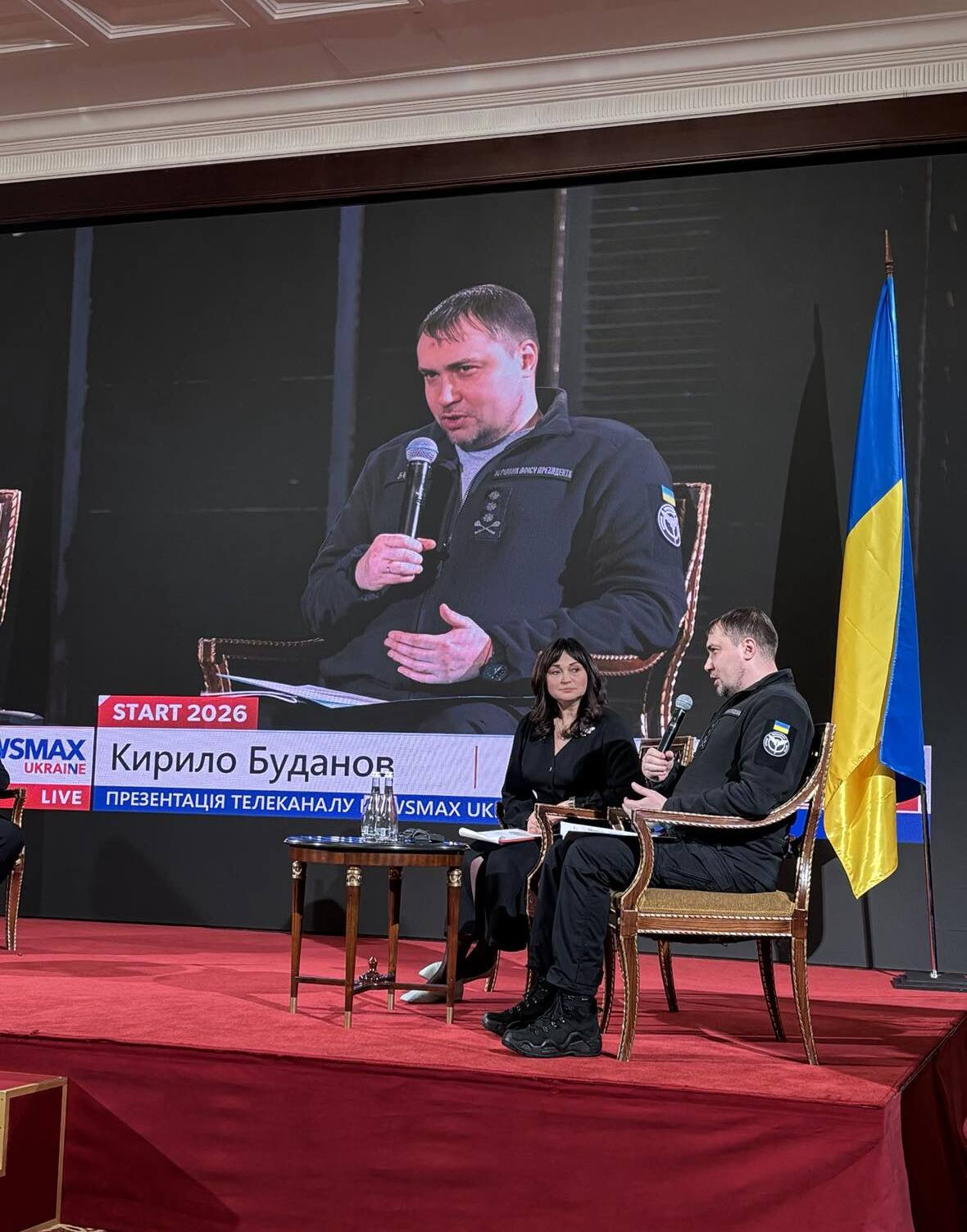 Сьогодні, 27 лютого, в Києві відбулася презентація телеканалу Newsmax Ukraine. Серед гостей — керівник Офісу президента України Кирило Буданов та лідерка партії «Батьківщина» Юлія Тимошенко. Про це з місця події повідомив кореспондент «Детектора медіа».