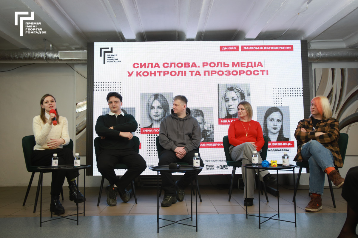 Медіадень Премії імені Георгія Ґонґадзе у Дніпрі стартував панельним обговоренням "Сила слова. Роль медіа у контролі та прозорості". Говорили про взаємодію медіа з місцевою владою, тиск на журналістів, антикорупційні розслідування на локальному та національному рівнях.