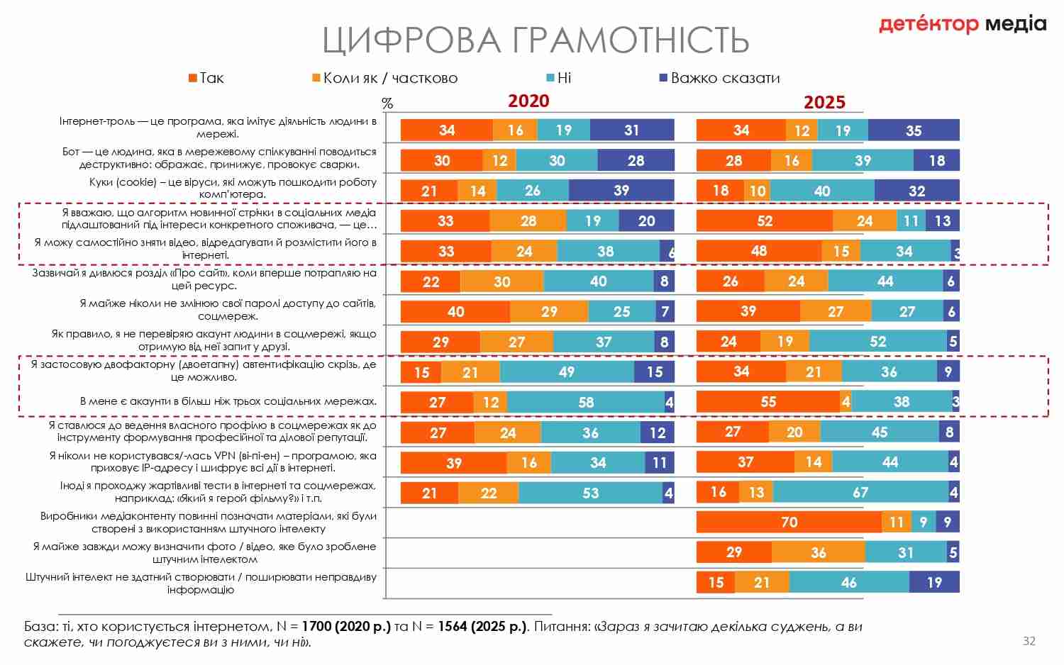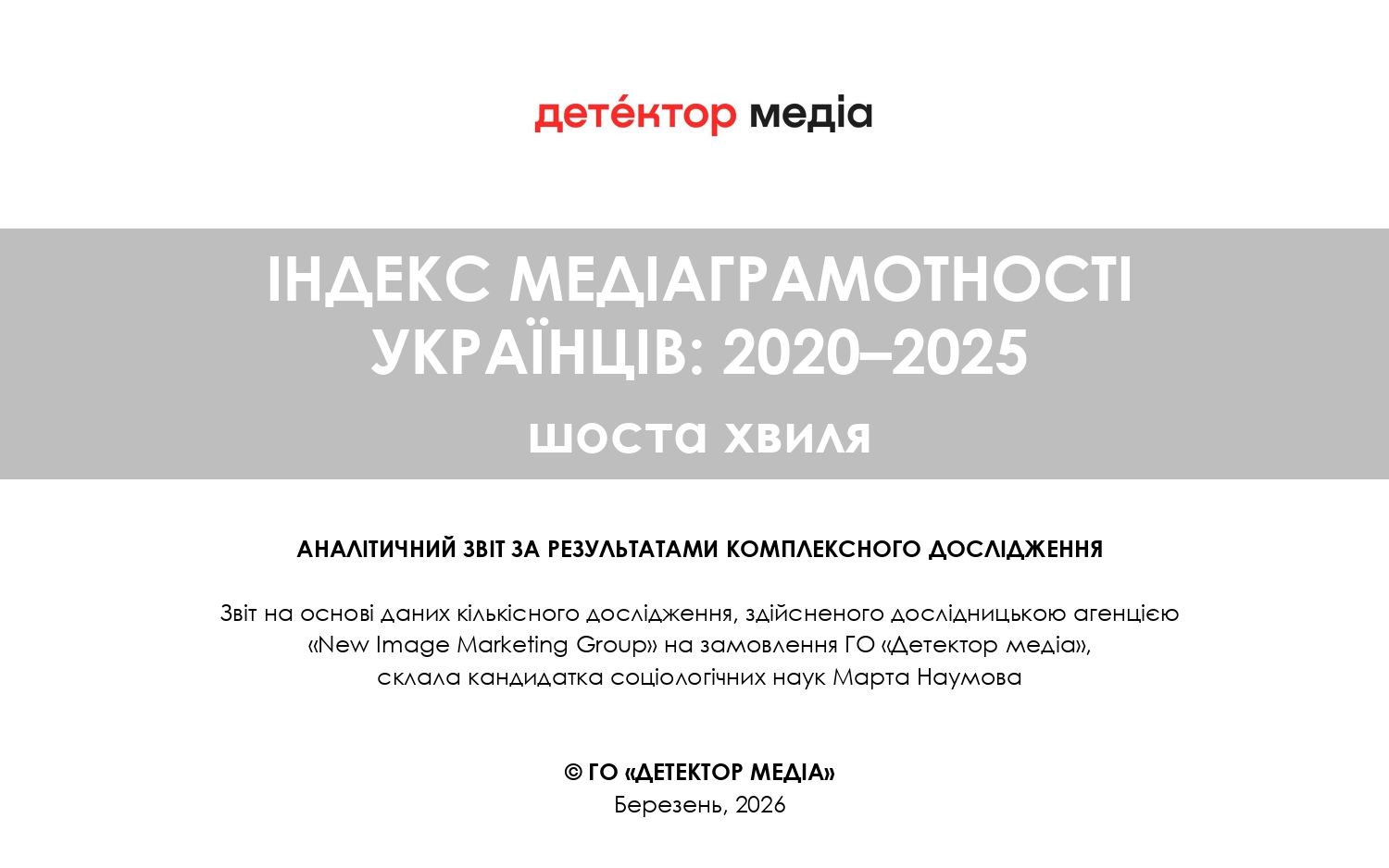 Мета дослідження: визначити індекс медіаграмотності української аудиторії та його динаміку (2020―2025 рр.)