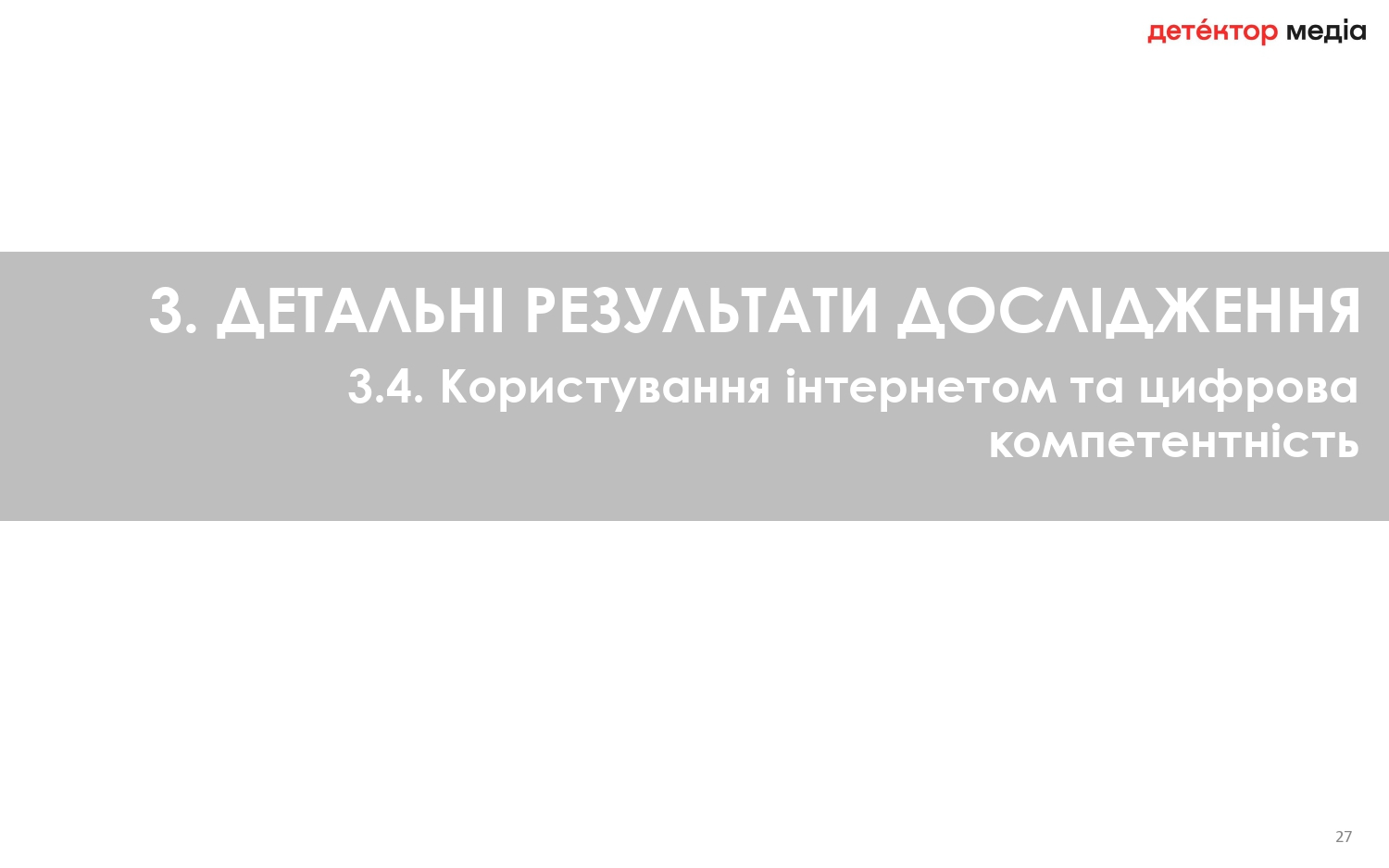 ■ Лише 3% українців не користуються інтернетом. 92% є інтенсивними користувачами мережі — звертаються до інтернету щодня або майже щодня. Ця частка не змінилася за останній рік.