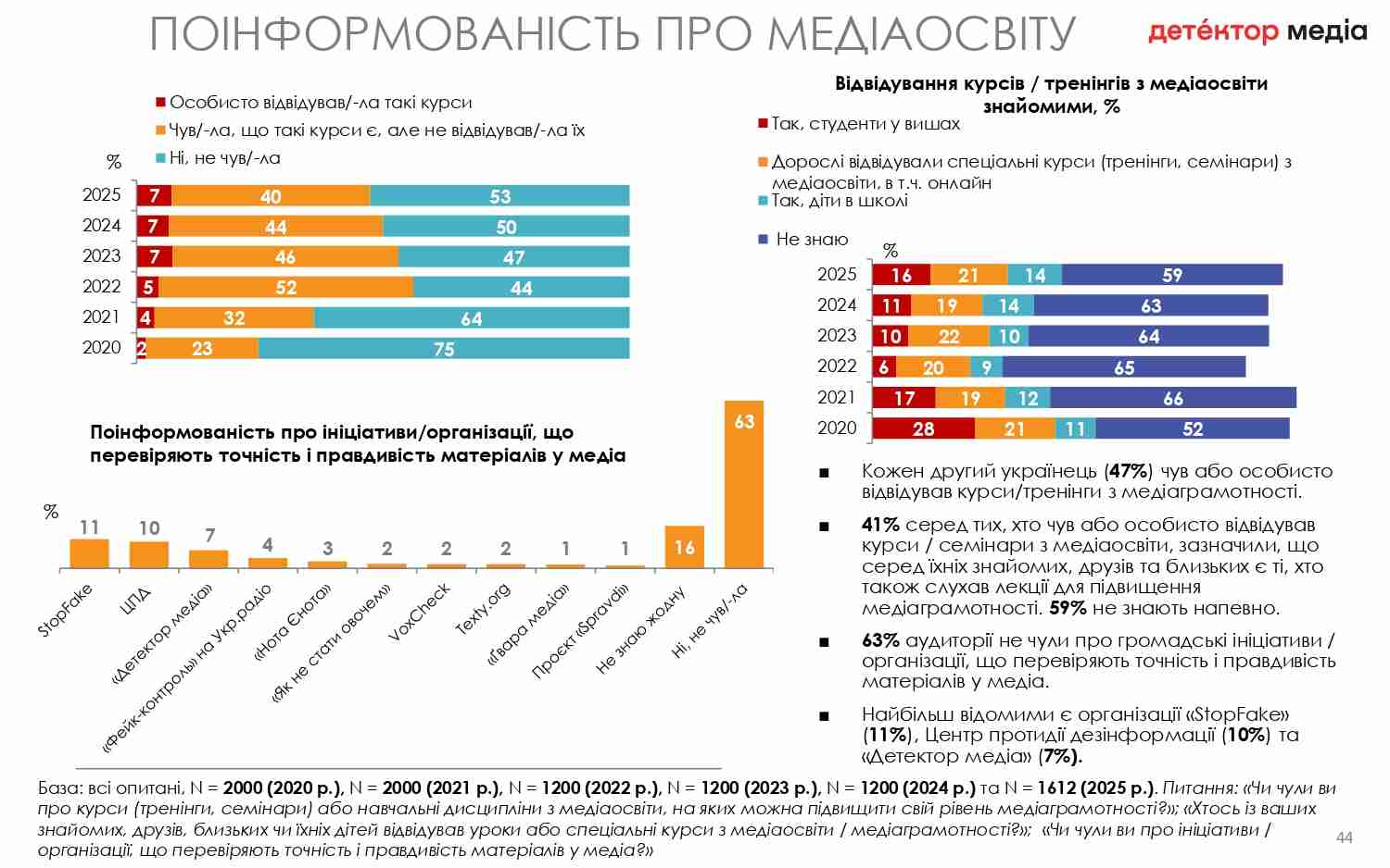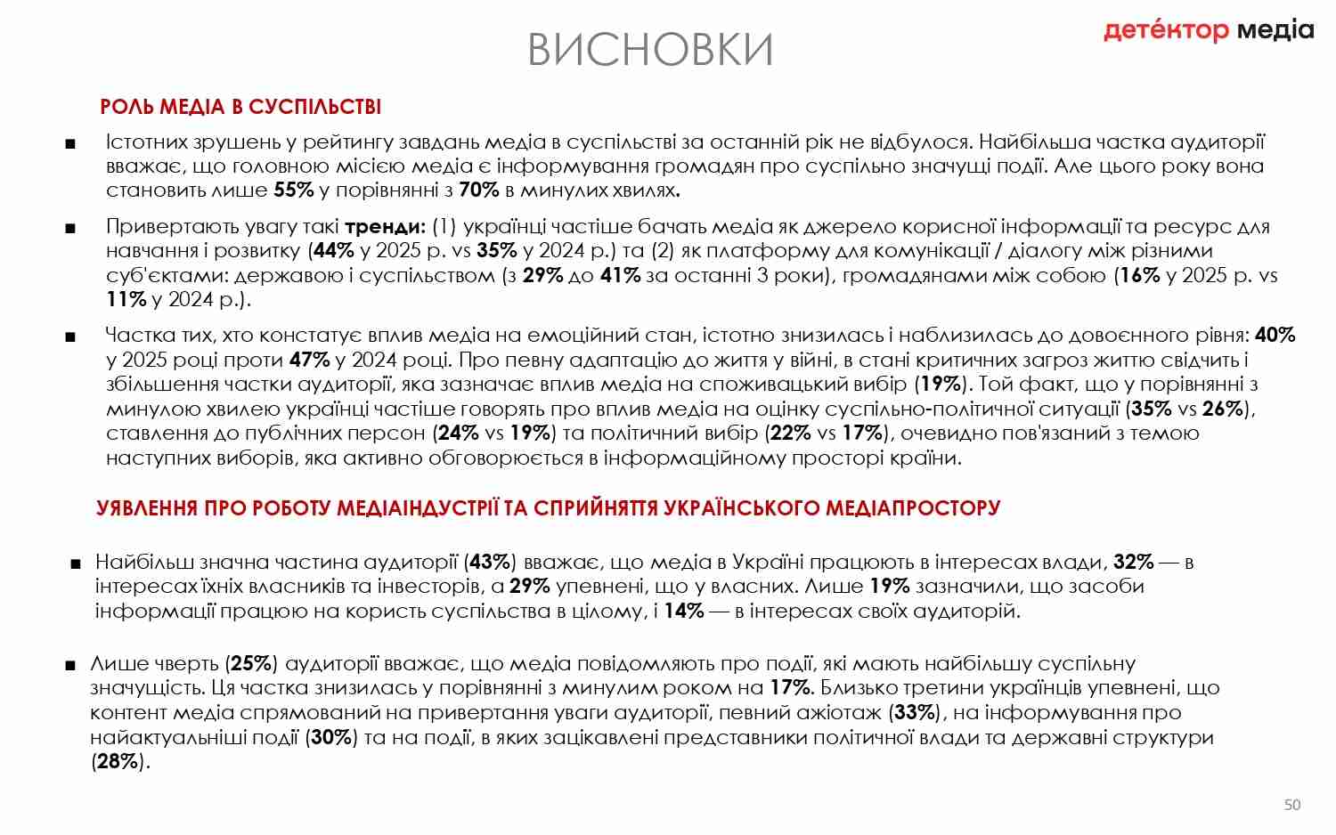 українці частіше бачать медіа як джерело корисної інформації та ресурс для навчання і розвитку (44% у 2025 р. vs 35% у 2024 р.)