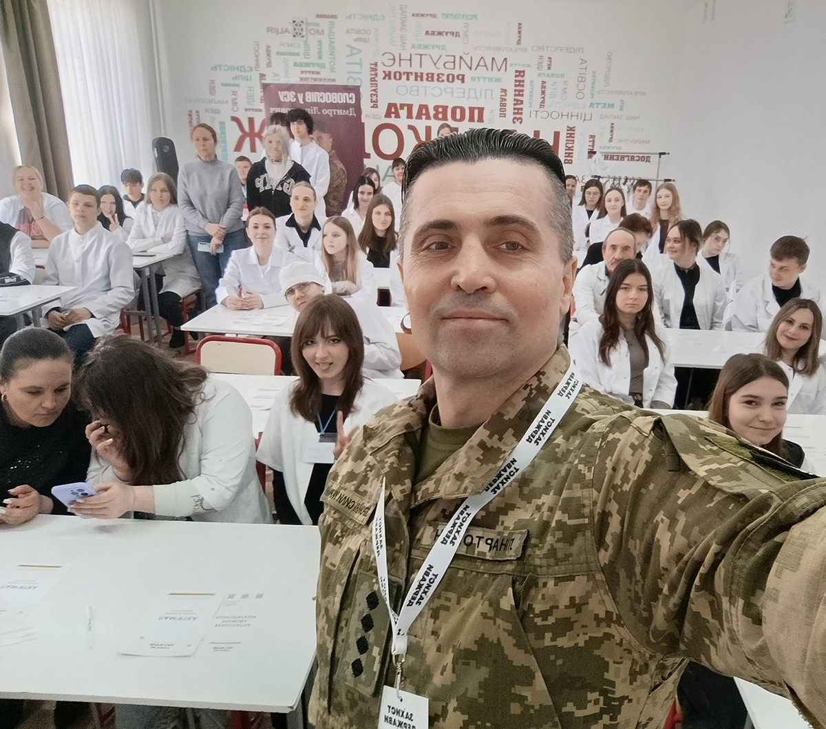 — Мені пощастило — я кинув себе у творчість. Зараз я паралельно і офіцер ЗСУ, і актор, і член спілок кінематографістів та письменників. Я взяв гітару і пішов у люди: до курсантів у військові виші, до побратимів, до волонтерів, до небайдужих співгромадян, яким «болить за Україну». Я почав проводити творчі зустрічі, де не тільки співав, а й розмовляв із людьми, «виговорювався» на наші одвічні теми: хто ми такі, яка наша ментальність.