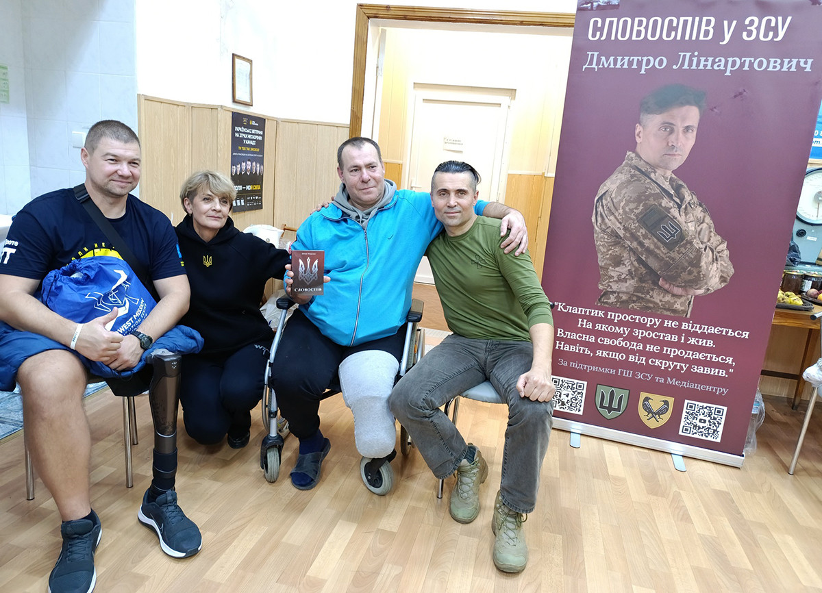 Після виходу зі шпиталю далі реабілітація завжди продовжується завдяки хорошим людям. І саме тому зараз я співпрацюю з організацією «Реабілітаційна сила України». Ми спілкуємося з ветеранами, показуємо кіно, проводимо творчі зустрічі — це «зшиває» серця. Це трошки поновлює душі. Я зрозумів, що реабілітація потрібна не лише воїнам, реабілітація потрібна усьому нашому суспільству. Наші люди «розкуйовджені», пошарпані війною. У кожного хтось служить або волонтерить. Оскільки я маю «українську прошивку», я знав, що мушу вижити, щоб нести людям українське слово, щоб реабілітувати таких, як я, бо я знаю методики, я знаю, як це робити через творчість, через розмову і бесіду. Я почав цим займатись і можу сказати, що зараз я себе вже трошки «вирівняв». Я продовжую служити у війську і паралельно можу реалізувати себе і у творчому напрямку.