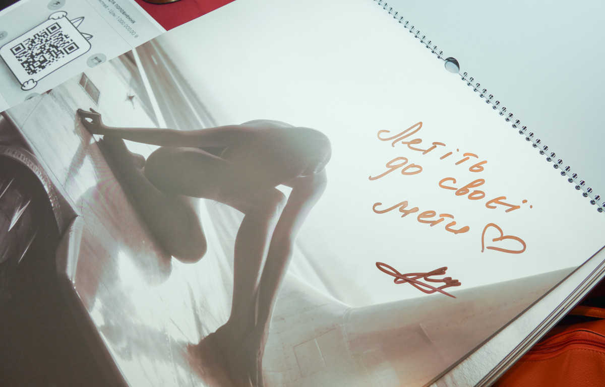 «У перший рік ми вирішили, що ми беремо з собою на календар щось одне, що належить військовому. У другий рік ми своїми тілами відтворювали емблеми Сил оборони. У третій — ми взяли з собою в кадр представників Сил оборони, наших п'ятиканальців, які одягнули піксель і на фронті виборюють свободу. А на четвертий рік, 2026-й, ми зрозуміли, що в житті, як і на війні, зараз без штучного інтелекту ніяк. Відповідно, в нас є і справжнє життя на світлинах, і штучний інтелект», — пояснила вона.