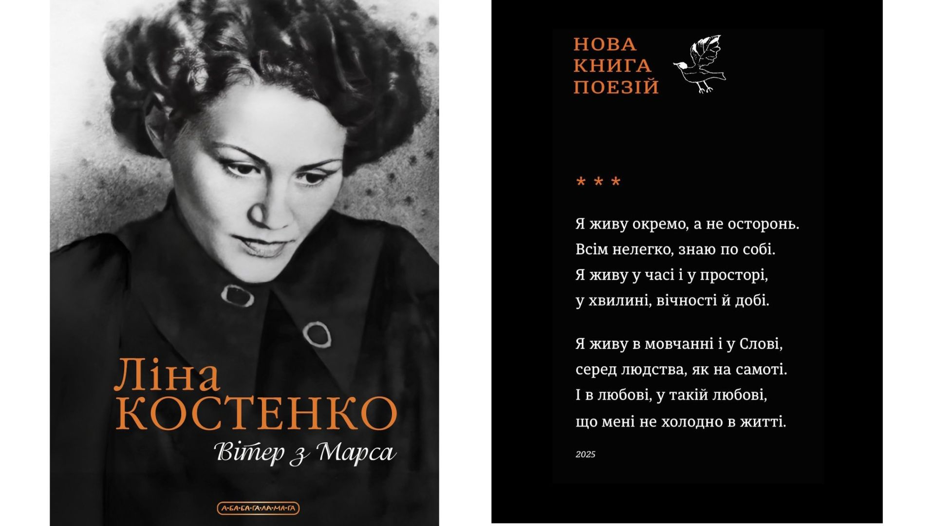 Видавництво «А-ба-ба-га-ла-ма-га» готує до друку нову збірку поезій Ліни Костенко «Вітер з Марса». Про це повідомили на фейсбук-сторінці видавництва.