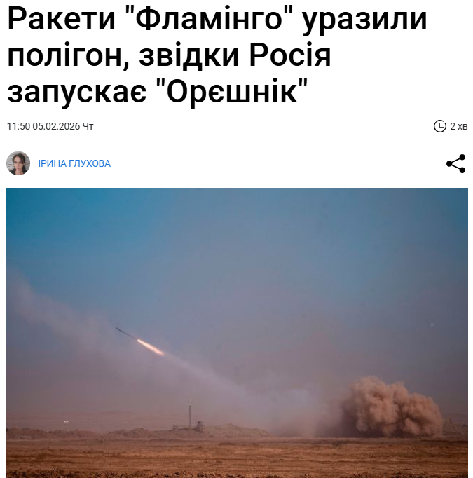 - “Ракети “Фламінго” уразили полігон, звідки Росія запускає “Орєшнік” (РБК-Україна)